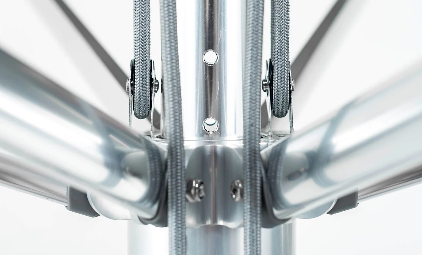 • 5 cm aluminium middenpaal vervaardigd voor sterkte, duurzaamheid en stijl.