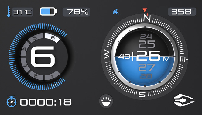 Het high-definition 5,5-inch liquid crystal display is uitzonderlijk helder en is onder druk getest tot een diepte van 100 meter. Het hoge niveau van schermhelderheid is van groot voordeel bij het rijden aan de oppervlakte tijdens een heldere of zonnige dag en is een eigenschap die niet gevonden wordt op andere duikscooters waar belangrijke informatie uiterst moeilijk te lezen kan zijn.