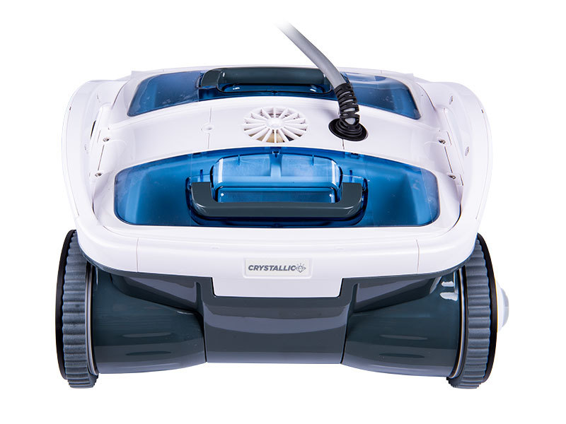 Met vier grote wielen overwint de Crystallic zwembadrobot ieder obstakel, verplaatst zich gemakkelijk tussen het eventuele "vergeten" speelgoed van uw kinderen op de bodem van het zwembad. Eenvoudige en stabiele bewegingen, de juiste zwembadrobot voor een familiezwembad.