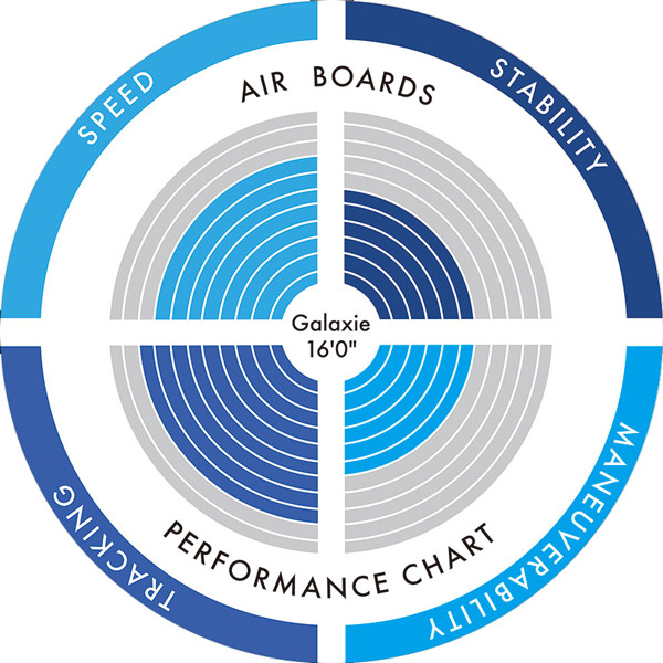 De GALAXIE 16'0" is perfect voor familie- of groepsuitjes en voor wie op zoek is naar een allround board om overal mee naartoe te nemen, een driepersoonsboard, een ultralange vorm, een royale vorm en een ietwat breed profiel van 34".