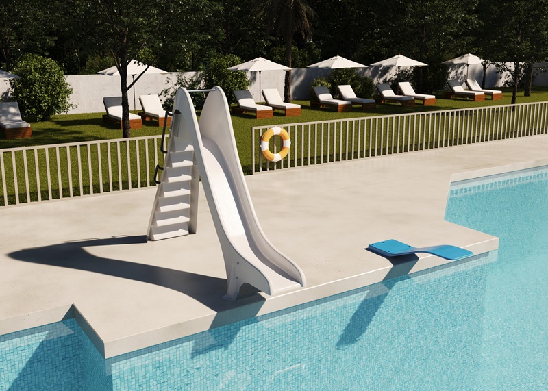Brede flexibele Bali duikplank, gemaakt van polyesterhars en glasvezel. Onaangetast door UV-stralen en weersinvloeden.