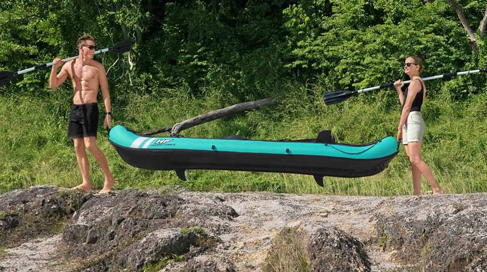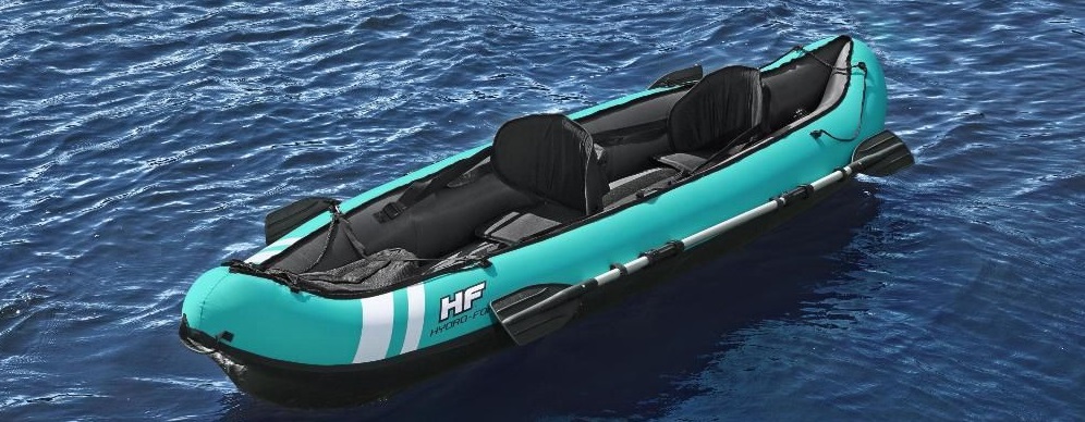 De Bestway Hydro Force Ventura is de sportiefste opblaasbare kajak voor 2 personen en heeft een aerodynamisch ontwerp, comfortabele stoelen en beschikt ook over een opblaasbare bodem gemaakt van zwaar PVC-materiaal.
