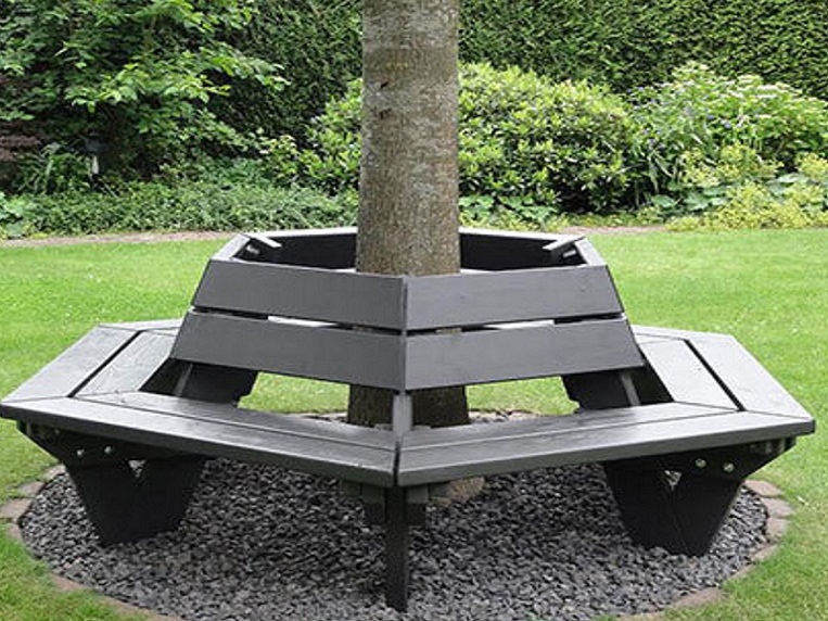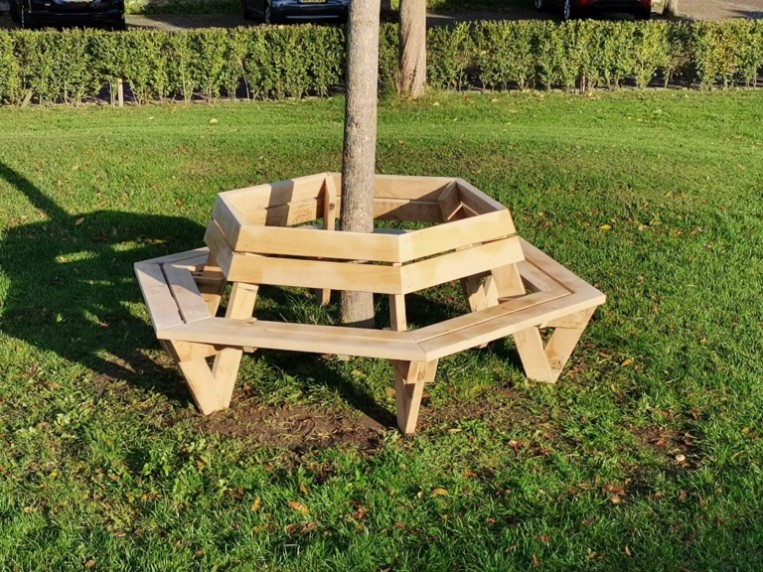 De boombank wordt rondom een boom geplaatst en heeft dus zitplaatsen aan alle kanten met een ideale zithoogte van 48cm.