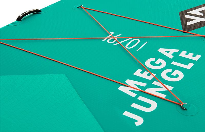 Ontworpen met een royale lengte van 487 cm en een breedte van 142 cm, biedt de Mega Jungle een zeer groot platform om ervoor te zorgen dat alle rijders voldoende bewegingsruimte hebben en peddelen zonder in de weg te zitten.