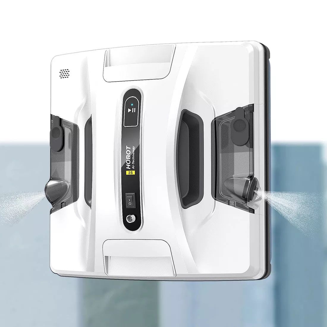 Dit nieuwe 2S model van Hobot is uitgerust met twee geïntegreerde tanks, die elk een ultrasone sproeikop hebben. Hierbij wordt een fijne spuitnevel op het oppervlak aangebracht zodat er geen watervlekken ontstaan bij het reinigen met de ruitenreiniger.