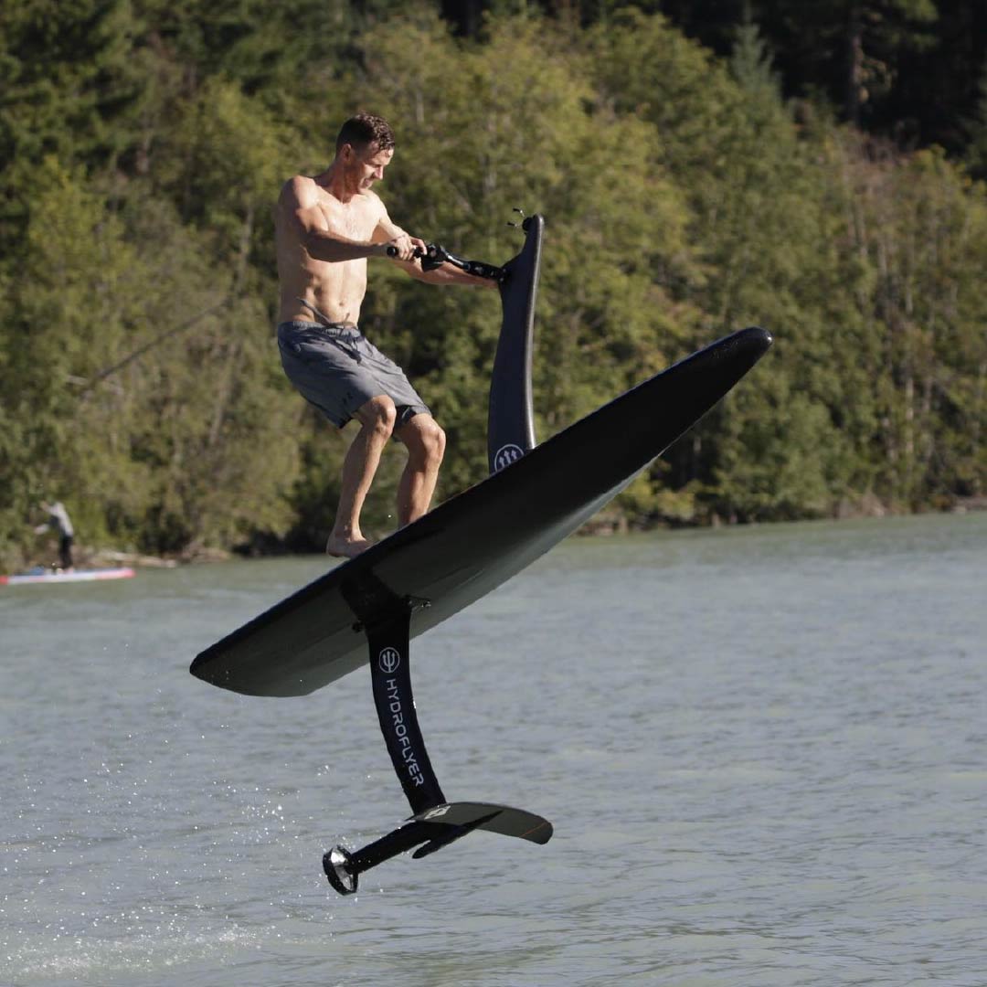 Bij de Hydroflyer verplaats je niet je gewicht tussen de voor- en achterbenen om de hoogte te regelen, maar hoe ver je je bovenlichaam naar voren of naar achteren duwt over het stuur. We moeten zeggen dat deze techniek leuk was en we vonden het makkelijker vergeleken met een eFoil. Zo goed voor beginners.
