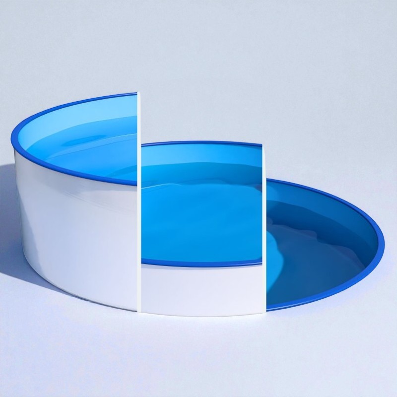 Zwembaden die van dit materiaal zijn gemaakt, hebben een vrij lange levensduur dankzij de dubbel gecoate stalen uitvoering van 0,7mm dikte, mits goed verzorgd en onderhouden. Het heeft een zeer elegante en moderne esthetiek die een vleugje verfijning toevoegen. In tegenstelling tot PVC-zwembaden met de gebruikelijke blauwe voering, streeft het Ibiza model ernaar zich te onderscheiden van de rest met een unieke esthetiek die niet onopgemerkt zal blijven.
