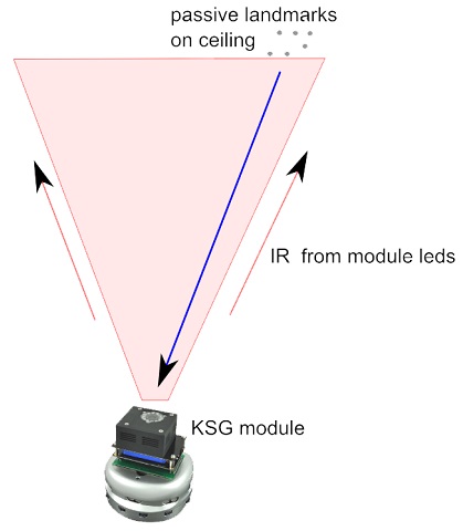 Het wordt gebruikt om navigatie te doen, speciaal voor het in kaart brengen en lokaliseren. De module heeft IR Led's voor verlichting oriëntatiepunten en een camera voor het vastleggen van het beeld, dat wordt verwerkt door elektronica aan boord. Het berekent positie en lager in verband met oriëntatiepunten geplakt op het plafond. Het maakt gebruik van de StargazerTM module van Hagisonic co. Ltd.