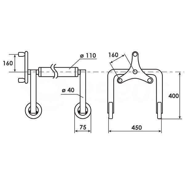 De afstand tussen de wielen is 450 mm, de hoogte van de telescopische stang vanaf de grond is 400 mm en de stang is extra versterkt met een diameter van 110 mm (standaard lieren zijn ca. 80 mm).