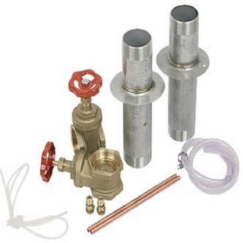 Levering van kleppen, slangen, flens, pakking en verlenging van de doorgang door beton met 15 cm.