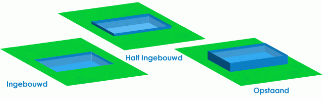 Naast de bovengrondse modellen is het mogelijk om de grotere modellen half of volledig in te bouwen. Bij metalen inbouwzwembaden is natuurlijk een stabiele ondergrond noodzakelijk. Dit kan door een laag stabilisé aan te brengen. De wanden bestaan uit verschillende metalen onderdelen.