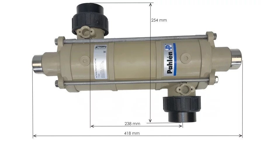Dankzij de titanium spiraal en de hoogwaardige schaal kan de Hi-Temp warmtewisselaar gebruikt worden in combinatie met solinators voor zwembaden.