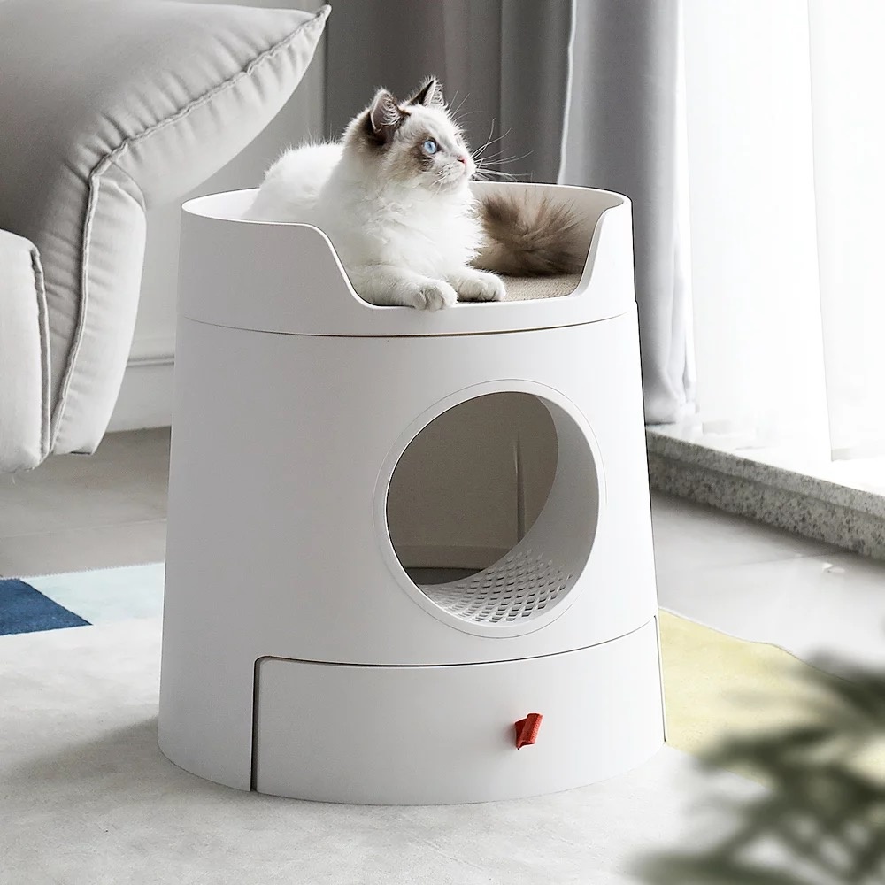 Het plateau aan de binnenkant zorgt ervoor dat wanneer jouw kat van het toilet afkomt, hij of zij een deel van het kattengrit onder de poten al kwijt is. Hierdoor blijft het grit waar het hoort en houd jij een schoon huis.
