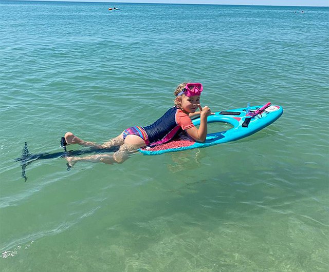 Als je jonge ontdekkingsreiziger even wil uitrusten, hoeft hij niet naar de kust te zwemmen om uit te rusten - hij kan gewoon in het water blijven en de plank als steun gebruiken.