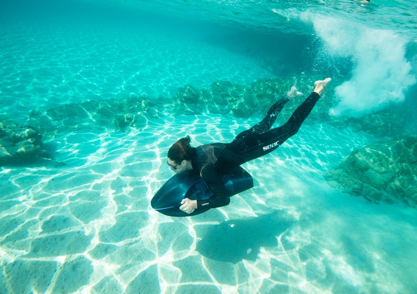 Twee motoren aan de twee zijden van het vaartuig zorgen voor stabiliteit en balans, terwijl ze ervoor zorgen dat de stuwkracht het lichaam van de gebruiker niet raakt.