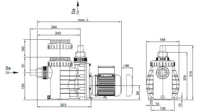 De Speck Pro Pomp 9 heeft een debiet van ca. 10 m³/h bij 6 meter waterkolom en is geschikt voor zwembaden tot 50 m³ of voor filters tot 75 kg filtermateriaal.