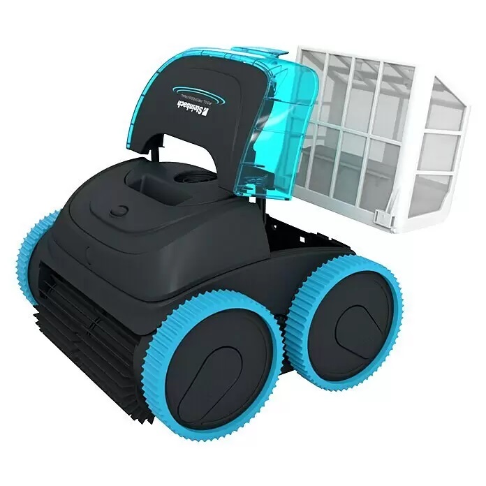 Deze Steinbach Poolrunner Battery Pro Performance heeft 4 wiel aandrijving en getande vorm, een systeem dat perfect werkt op de bodem van het zwembad en effectief over de wanden glijdt. Het heeft een filter met een inhoud van 3 liter en is heel gemakkelijk schoon te maken, op te vangen en opnieuw te gebruiken. Door op de knop te drukken wordt het filter van bovenaf verwijderd. We moeten hem uit het water halen, schoonmaken met behulp van een waterslang en hij is klaar voor gebruik.