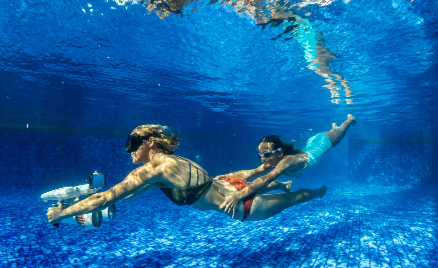 Met het unieke modulaire ontwerp van WhiteShark Tini kun je eenvoudig twee scooters aan elkaar bevestigen om het vermogen en het plezier te verdubbelen. Door twee scooters aan elkaar te koppelen, kunnen ervaren duikers door het water vliegen, waardoor het de snelste scooter met twee motoren op de markt is.