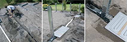 Het Omega-systeem bestaat uit een klem- en ondersteuningsmechanisme door middel van stalen balken die ondergronds worden ingegraven om een grotere stevigheid te bereiken. Deze installatie vermijdt de noodzaak om externe palen aan de zijkanten van het zwembad te plaatsen. Ze zijn ongeveer 5 tot 15 cm groot en worden zowel onder het zwembad als buiten de zijkanten ervan begraven. Dit systeem verbetert het uiterlijk van het zwembad esthetisch, vergemakkelijkt de toegang en vergemakkelijkt de verdeling van de tuinruimte..