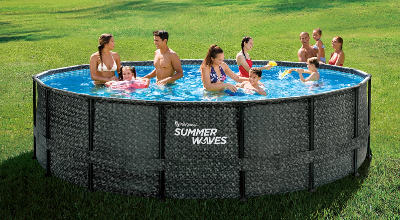 Bestway presenteert exclusief het Swing Elite Wicker model voorzien met een diameter van 427 cm en een diepte van 107 cm. Dit buisvormige zwembad heeft een innovatief imitatie-rieten Wicker ontwerp dat zich opvallend onderscheidt van de traditionele PVC-baden in de kleur blauw.