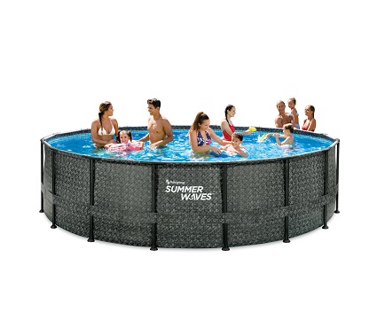 Bestway presenteert exclusief het Swing Elite Wicker model voorzien van een diameter van 427 cm en een diepte van 107 cm. Dit buisvormige zwembad heeft een innovatief imitatie-rieten Wicker ontwerp dat zich opvallend onderscheidt van de traditionele PVC-baden in de kleur blauw.