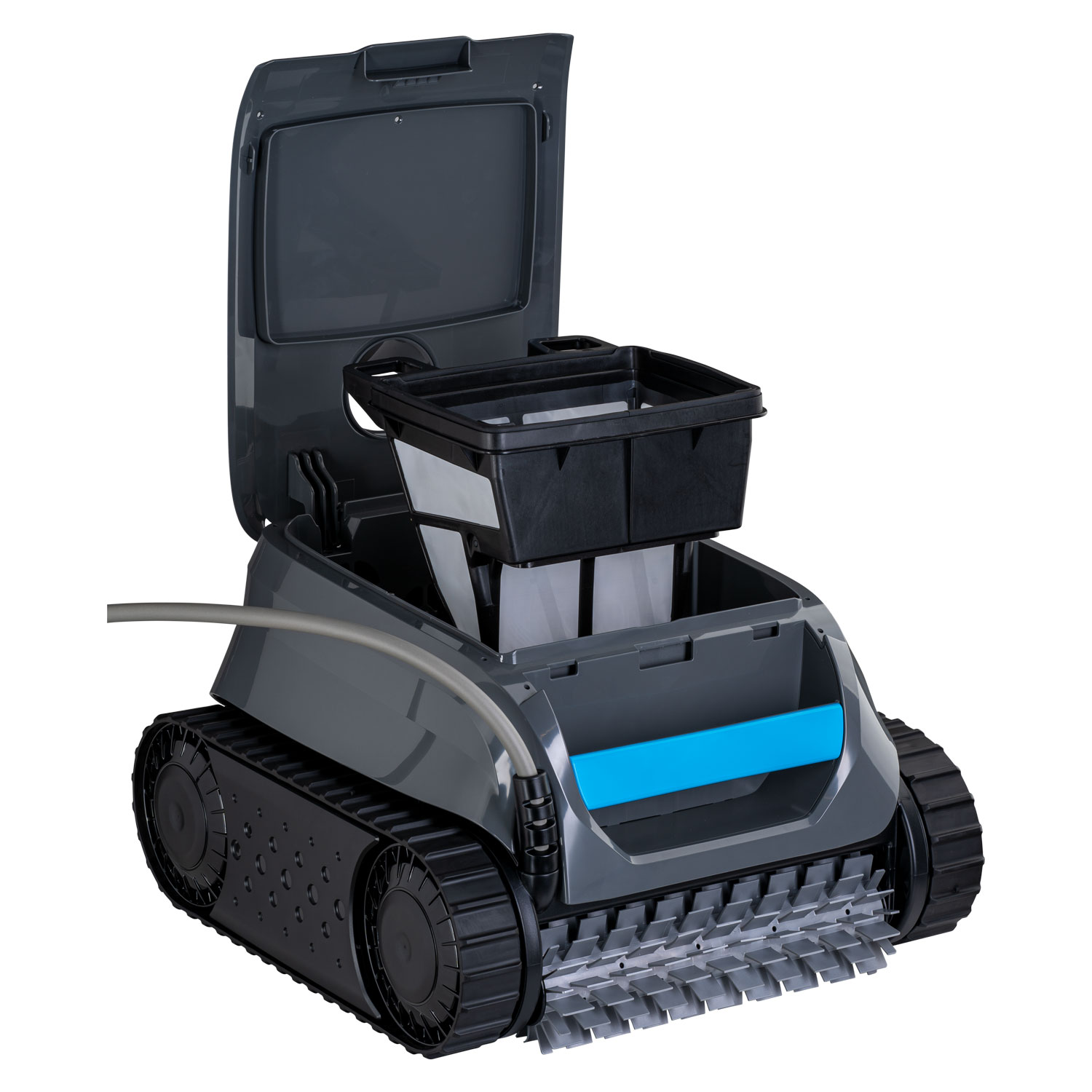 De wateruitstroom aan de bovenkant en zijkant zorgen voor een effectievere reiniging van de waterlijn omdat deze zwembadrobot zich makkelijker naar de zijkanten kan bewegen. Dit model is geschikt voor alle type ondergronden en voor zwembaden tot 9 meter dankzij een kabellengte van 15 meter.