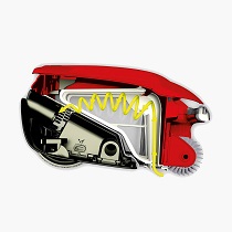 De gepatenteerde cyclonische aspiratie zorgt voor een krachtigere en langdurigere aspiratie. Spiraalvormige borstels en progressieve filtratie op twee niveaus zorgen voor een efficiëntere verwijdering van vuil.