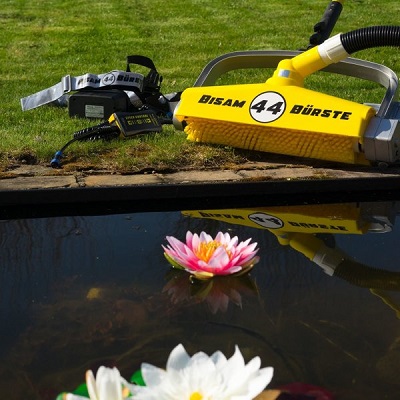 De BISAM 44 is de bodemreiniger bij uitstek voor uw zwemvijver en geschikt om grotere oppervlakten vlot en efficiënt te reinigen dankzij een werkbreedte van 44cm. Door de roterende cylindrische borstel wordt de aangegroeide biomassa vlot losgemaakt en via de aanzuigopening verwijdert. Het water wordt hierdoor niet vertroebeld tijdens de onderhoudswerken. De BISAM 44 kan met een schakelaar vooruit en achteruit draaien voor maximale bewegingsvrijheid en in combinatie met de telescopische steel kan de borstel eenvoudig gehanteerd worden. De met een Lithium accu uitgevoerde BISAM 44 wordt met een opbergtas. Deze Lithium accu’zijn krachtig genoeg om meerdere uren te functioneren. Afhankelijk van de ondergrond en waterdichting kunnen borstels van verschillende hardheid gebruikt worden. Standaard wordt een zachte gele borstel meegeleverd geschikt voor folie zwemvijvers en of zwembaden en voor natuursteen, tegels of beton uitrustingen is een hardere rode borstel noodzakelijk. Door gelijktijdig te borstelen en te stofzuigen wordt er zeer veel tijd en water bespaard. De BISAM 44 is compatibel met de FANGO 2000 en de TORPEDO range.